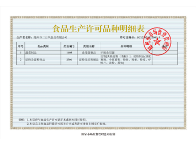 食品生產(chǎn)許可品種明細表